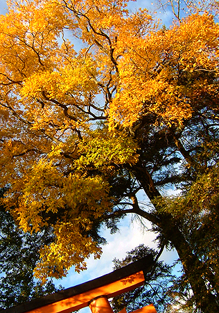 ちらほら紅葉。この神社、北に位置しているだけでなく