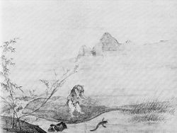 室町時代の画僧、如拙による《瓢鮎図(ひょうねんず)》 (※部分)