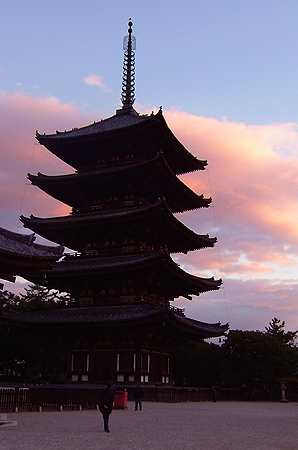 夕暮れの興福寺。国宝館では阿修羅が常時閲覧可能。