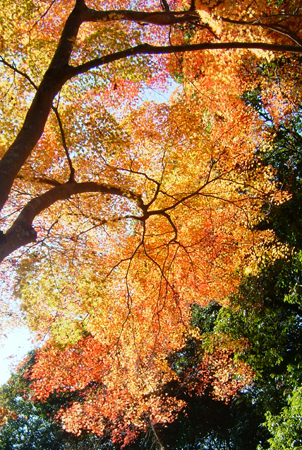 ちらほら紅葉。この神社、北に位置しているだけでなく